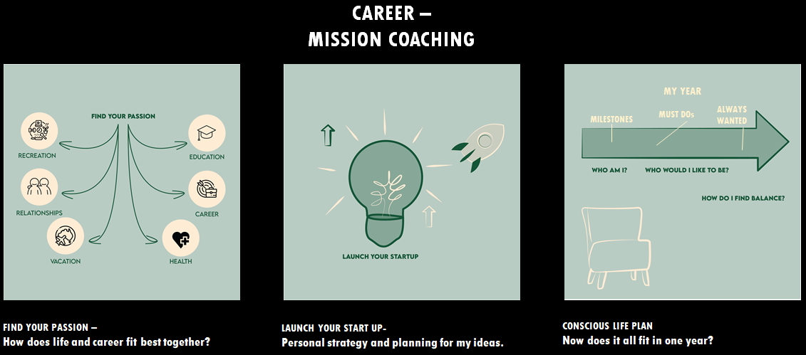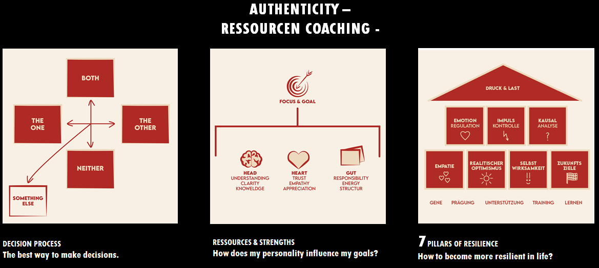 Each of the tools can be seen independently or in a combination of different tools up to your requirements such as startup coaching or special career advancement. Coaching session can be done online or in person.
