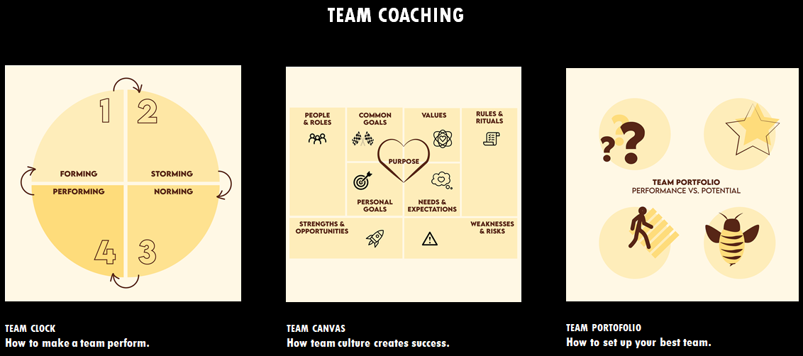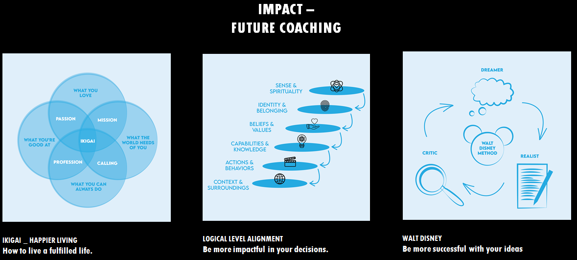 Below you find a small selection of coaching tools and methods. For the below coaching content you can calculate around one session of two hours. It is up to you, if you are interested in follow up meetings to deepen the next steps for you.